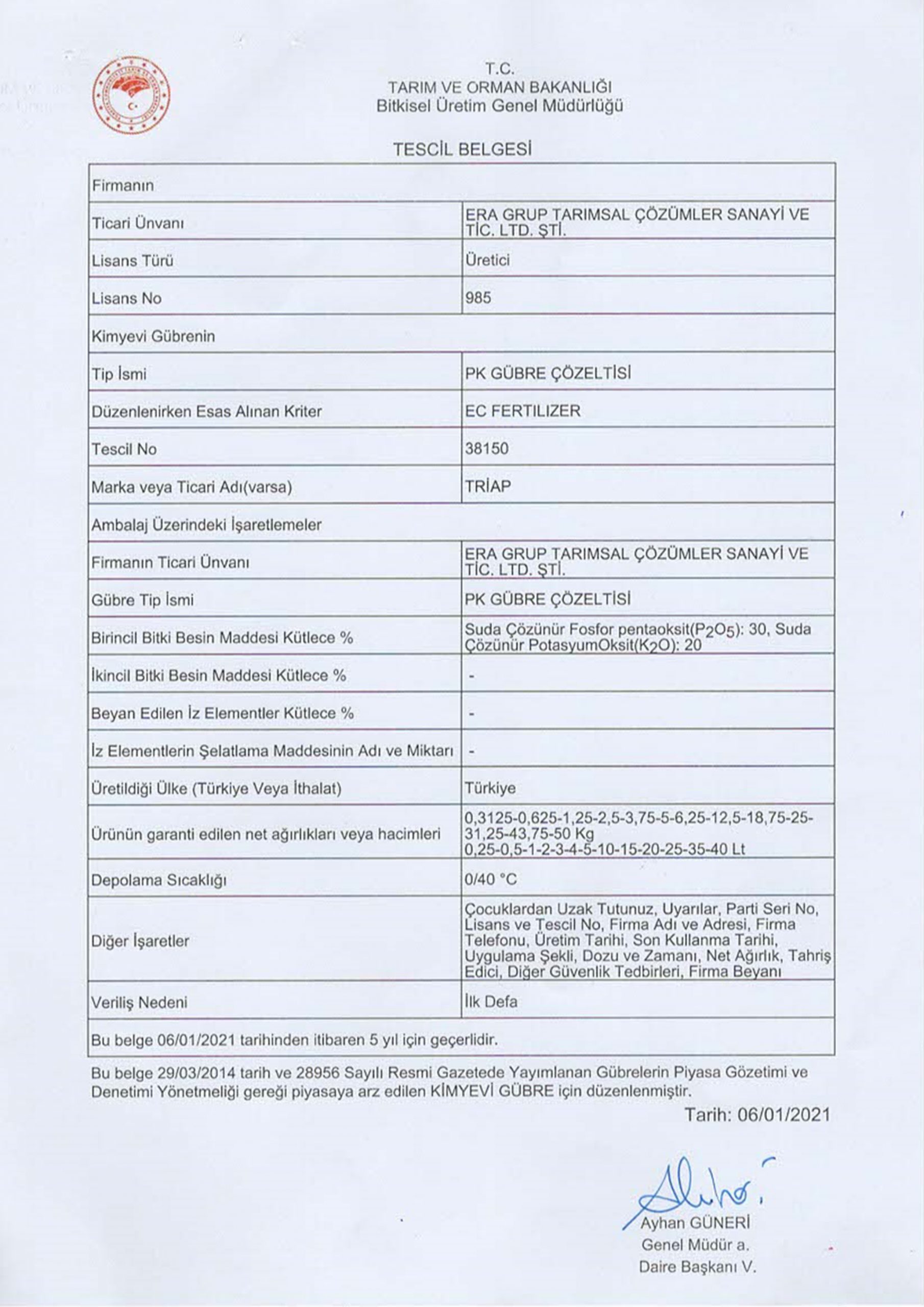 Tria Serisi Tescil Belgeleri